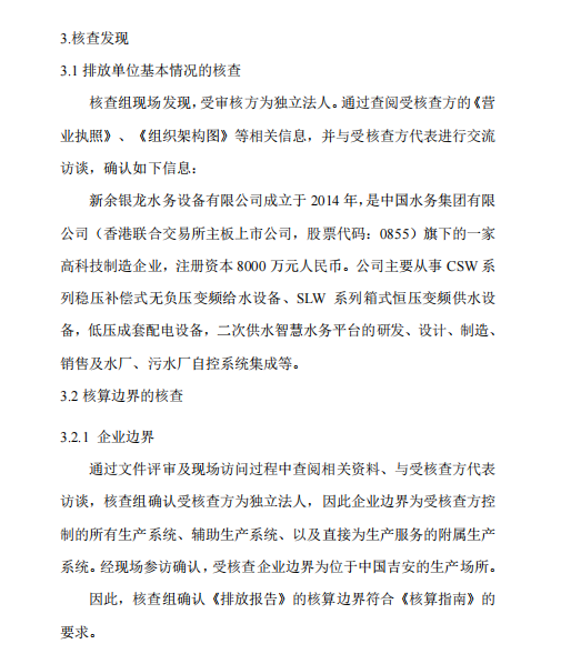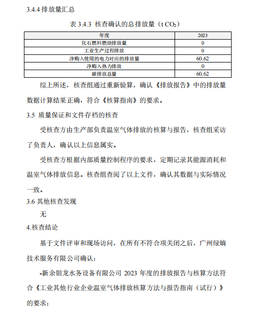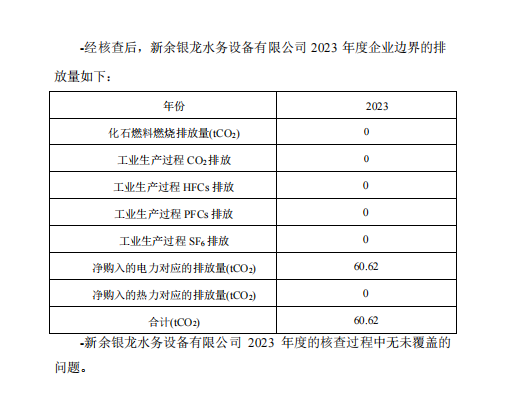 新余銀龍水務(wù)設(shè)備有限公司2023年度溫室氣體排放核查報告公示
